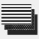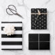 Dieses Set von Packpapierblättern zeichnet sich durch ein solides, tiefschwarzes Blatt aus, das tiefste schwarze Streifen auf Weiß koordiniert, weiße Polka-Punkte auf tiefstem Schwarz.