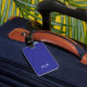 Dieses moderne Gepäckanhänger-Design zeichnet sich durch einen hellen, tiefblauen Hintergrund aus. Ihre Initialen in fett weißem Text sorgen für ein schlichtes und farbenfroh aber berufliches Aussehen.