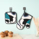 Tiefe: Abstrakt Schwarz, Weiß und Blau Ofenhandschuh & Topflappen-Set