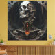 Eine surrealistische Horror-Szene, die eine Skelettfigur aufwändig zerlegt und ihre Innenarbeit im Querschnitt-Stil offenbart. Dunkle, verdrehte Landschaften mit grotesker Flora und rauschenden Schatten umgeben das zerbrechliche Skelett und betonen seine Fragilität. Die unheimliche Beleuchtung wirft tiefe Schatten auf und verstärkt die beunruhigende Atmosphäre dieses makabren und fantastischen Albtraums.
