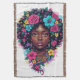 Tiefe schwarze Frau mit hellen Blumen im Afro Decke