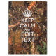 Ihr personalisiert Behalten Calm Sprichwort in einer dunklen Herbstsaison Camouflage Dekoration. Ein personalisiertes Sprichwort im Stile von Calm auf einem freundlichen Geschenk. Humorvoll oder whimsical versuchen Sie Ihre kreativen Worte auf zwei bearbeitbaren Zeilen Text. Vergessen Sie nicht, HAUPTSTADT-Briefe für beste Ergebnisse zu verwenden.