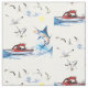 Ein Bild eines Fischerbootes, das nach den großen Typen geht, wird auf diesem bunten Gewebe gekennzeichnet. Es inspiriert eine endlose Vielzahl von Projekten, um ein an die glücklichen Sommertage zu erinnern, die auf dem Strand oder den Zeiten tollen in den Inseln verbracht werden.