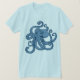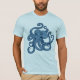 Einfarbiger blauer Krakenentwurf schaut auf einem mittleren blauen Shirt am besten, aber schaut auch auf gerade ungefähr allem groß.