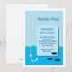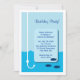 Die Einladungskarte für den Low-Tide-Fischfang hat eine Angellinie und einen Haken in blauem Meerwasser mit drei Fischen, die darauf schwimmen. Ideal für eine Geburtstagsfeier oder eine andere Gelegenheit. Passen Sie Ihren eigenen Text an. © Morning 6
