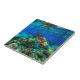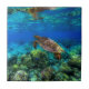 Schwimmen mit den exotischen tropischen Meeresschildkröten! Lebhaftes Foto erschossen Tauchen direkt unter der Oberfläche des blauen tropischen Meerwassers. Die Meeresschildkröten schwimmen um das Korallenriff herum und in der Nähe gibt es kleine, bunte tropische Fische. Meeresschildkröten können bis zu 100 Jahre leben, bis zu 5 Stunden lang unter Wasser halten, Quallen essen und bis zu 2.000 LBS wiegen. Dekoration im tropischen Theme? Mit dieser hochwertigen Tropen-Foto-Keramik-Kachel können Sie Ihre Kreativität wirklich präsentieren.