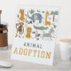 Adoptier An Amimal Two Wild Birthday Safari Tiere Niedlich Kids Welcome Pedestal Sign Tabletop Party Signatur Features whimsical Giraffe, Elefant, Löwe, Zebra, Leopard, Affe, Schlange, Krokodil, niedliche und farbenfrohe wilde Tiere mit dem Text in modernen Schwarz-Senf Typografie-Skript. Ideal für Jungen oder Mädchen, Kinder zum zweiten Geburtstag feiern. Designed by Evco Studio. Für die Koordination von Elementen siehe www.zazzle.com/store/evcostudio