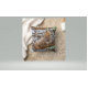 Ein quadratisches Kissen zeigt ein detailliertes Bild eines Leoparden-Lounges in einem Baum. Der Leopard, das Hauptfach, liegt in der Mitte des Kissens und liegt bequem auf einem dicken, gegrabenen Zweig. Sein Fell ist ein auffallendes Muster von schwarzen Flecken vor einem bunten Hintergrund, typisch für Leoparden. Der Kopf des Tieres wird leicht zur Seite gedreht, mit einem leicht offenen Mund, der den Eindruck erweckt, dass es sich um einen Panzer handelt oder kurz davor steht, zu gähnen. Der Baum selbst ist ein Netz von Zweigen, einige kahl und andere mit spärlichen grünen Blätter, was auf eine Trockenzeit oder eine Übergangszeit hindeutet. Die Zweige bilden eine komplexe, miteinander verwobene Kulisse für den Leoparden, die dem Bild Tiefe und Textur verleiht. Die Beleuchtung scheint hell und natürlich zu sein, was die Texturen des Leopardenfells und der Baumrinde unterstreicht. Die Gesamtkomposition ist ausgewogen, wobei der Leopardenkörper einen wesentlichen Teil der Kissenoberfläche füllt und das Auge des Betrachters sofort gezeichnet wird. Der Hintergrund ist zwar detailliert, lenkt aber nicht vom Hauptfach ab, sondern verstärkt das Gefühl des natürlichen Lebensraums des Leoparden. Der Stoff des Kissens scheint glatt zu sein, was eine klare und lebendige Wiedergabe des Fotos ermöglicht.