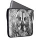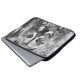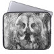 Grafisches Portrait einer großen grauen Eule in Schwarz-Weiß