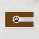 Tierklinik, Pfoten minimalistische Visitenkarten schwarz, weiß, braun, mit einer schwarzen Pfote auf einem weißen Kreis. Brauner Hintergrund mit weißen Rändern. Ein großartiges Design für Tierärzte oder Tierkliniken/Krankenhäuser.