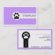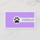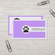 Tierklinik, Pfoten minimalistische Visitenkarten schwarz, lila, weiß, mit einer schwarzen Pfote auf einem weißen Kreis. Lila Hintergrund mit weißen Rändern. Ein großartiges, feminines Design für Tierärzte oder für Haustier-Kliniken/Krankenhäuser.