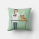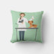 Tierärztliche Frau mit grünen Tieren Kissen