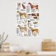 Das Poster zeigt das Muskelsystem mit den großen Muskeln des Körpers und den tiefen Muskeln des Nackens. Das Kreislaufsystem und das Skelettsystem mit den Hauptknochen des Körpers. Die oberflächlichen Nerven. Seitliche Sicht auf die inneren Organe und ventrale Sicht auf den Darm. Bezeichnet mit Beschreibungen.