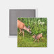 Eine schützende Hirschtüte ermutigt sie in einem grasbewachsenen Feld im Springtime zu ihrer süßen Fawn. Ein wunderschönes Foto-Design für Wildleute. Dieses Foto ist von Skye Ryan-Evans ©.