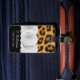 Chicgepäckumbaueigenschafts-Leoparddruck verschönert mit weißen Rosen.