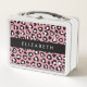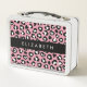 Tierdruck, rosa Leopard, Herz, Ihr Name Metall Brotdose