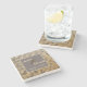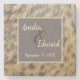 Dieser Untersetzer enthält ein tierisches Foto von weiblichen Entenfedern. Die schönen gepunkteten Federn in Gold und Dunkelbraun kurvieren und fließen vertikal auf diesem Untersetzer. Ein solider, bräunlicher und grauer Platz in der Mitte bietet den Hintergrund für die Namen der Braut und des Bräutigams und das Hochzeitstag.