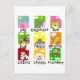 Auf der Postkarte "Animals on Parade" finden Sie verschiedene farbenfrohe Tierbilder und Texte im Kinderstil. Zu den Tieren zählen Nilpferde, Giraffen, Affen, Stier, Löwe, Elefant, Schwein, Zebra und Schafe.