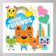 Niedliche, farbenfrohe und lustige Tierfreunde gestalten T - Shirt, Buben, Decken, Kissen, Badetücher, Wanduhren, Taschen, Tasse, Pfannkuchen und vieles mehr mit einer Eule, Bären, Eichhörnchen, Hasen und Frosch, einer Sonne, Regenbogen, Herzen und Wolke mit Text, der "Gute Freunde" liest!