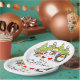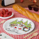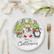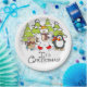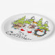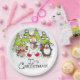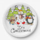 Ein niedlicher, farbenfroher Weihnachtsgestalter mit Tellern wie Eisbär, Pinguin und Maus mit Schals und eisbedeckten Skaten mit schneebedeckten Bäumen und Text, der lautet Weihnachten!