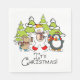 Eine niedliche, farbenfrohe Weihnachtszettel-Serviette mit Eisbär, Pinguin und Maus mit Schals und eisbedeckten Skaten mit schneebedeckten Bäumen und Text, der lautet Weihnachten!