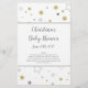 Diese Baby-Duschkarte "Animal Gestation" für eine zukünftige Mutter mit einem modernen Drehbuch auf grauem goldgelbem Sternenhimmel, perfekt für ein Geschlecht zeigen Babydusche! Backside mit der Antwort-Taste!