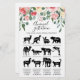 Kaufen Sie dieses Spiel und genießen Sie hochwertige Blume Tiergestation Spielkarte für Ihre Veranstaltung! Wie lange ist jedes Tier schwanger? Baby Dusche Aktivitäten! ANTWORTEN: Hirsch - 8 Monate, Kangaroo - 40 Tage, Kaninchen - 1 Monat, Bären - 7 Monate, Kamel - 14 Monate, Fox - 51 Tage, Puma - 3 Monate, Dolphin - 1 Jahr, Lama - 11 Monate, Ziege - 5 Monate, Elephant - 22 Monate, Katze - 2 Monate