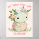 Passen Sie dieses niedliche Kinderschildkrötenplakat für Ihr Kinderzimmer an. Geben Sie in Ihr eigenes inspirierendes Zitat und Babynamen ein.