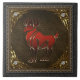 Wir sind stolz, dieser hohen Qualität die dekorative Fliese anzubieten, die das erste Zeichen des Tierkreises kennzeichnet: Widder. Dieses ausgezeichnete Symbol wird mit geschnitztem Gold und prägeartigem jeweled rotem Lack gegen einen ledernen Hintergrund dargestellt. Die vier Sonnen, die im Gold geschlagen werden, stellen die Gesamtheit der Jahreszeiten, jede darstellt ein eingebettetes Widder birthstone dar: Diamant.