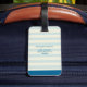 Das Gepäckanhänger eines Kindes. Text sagt wenig Entdecker auf der Vorderseite. Personalisieren Sie Ihre Daten auf der Rückseite. Entworfen mit niedlichen Kinderthemen Kinderzimmer Kunst Illustrationen von einem kleinen Hund Reiten in einem Flugzeug und ein Spielzeugzug gefüllt mit skurrilen Tieren. Eine helle orangefarbene Doodle Sonne scheint über dem Kopf. Set auf cremefarbenem, blau gestreiften Hintergrund.