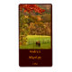 Diese schöne rote Weinflasche kennzeichnet eine Landschaft von zwei braunen Pferden in ihrer grünen Weide mit Herbstfarbe Rot, Orange, Gelb und Gold in den Hügeln dahinter. Ein Zaun umgibt die Weide. Jeder Text kann mit Ihren speziellen Informationen individuell angepasst werden.