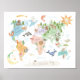 Tierweltkarte Kinder drucken, Tiere der Welt Poster
