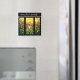 Schöne Reproduktion des gefestigten Glases aus Tiffany. Foxglove-Blume und ein Sonnenuntergang im Hintergrund auf diesem farbenfrohen Glass Magnet.