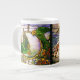 Auf dieser Jumbo-Tasse befindet sich eine wunderschöne Vintage Jugendstil-Glasfenster Reproduction of a Cockatoo und zwei Green Parrots Art. 20 Unzen Erwärmung Flüssigkeit für diese kalten Tage und Nächte.