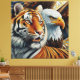 TIGER AND EAGLE, REALISTIC AND MOSAIC STYLE LEINWANDDRUCK