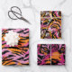 Tiger Animal Print Pink & Orange Retro Glamour Geschenkpapier Set