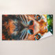 Dieses Badetuch hat einen Tiger darauf abgebildet.