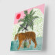 Tiger bei Sunrise II von Melissa Wang. Ein Tiger geht an einem tropischen Baum vorbei, während sich die Sonne über den Himmel bewegt. | 164403D