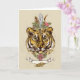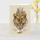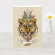 Dieses Design ist mit einem boho-artigen Aquarellbild eines Tigers in Blume und Federn gekleidet.