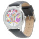 Kinder Edelstahluhr mit schwarzem Lederarmband