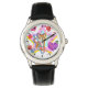 Uhr, Klassische Damenuhr mit schwarzen Lederarmband