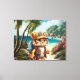Tiger Cub mit Rucksack und Kaffee Leinwanddruck