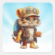 Tiger Cub mit Rucksack und Kaffee Quadratischer Aufkleber