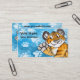 Ein wellenartig bewegendes Tigerjunges grüßt Ihre neuen Geschäftsbeziehungen und Kunden mit einem Lächeln! Dieser Cartoon, WatercolorAusrüstungsbeschreibungen ein blaues catprint Muster. Fertigen Sie die Front und die Rückseite mit Ihren Unternehmensinformationen besonders an.