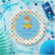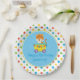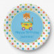 Diese Partyplatte kennzeichnet einen blauen Hintergrund, der durch einen wiederholenden Rüttler der roten, blauen, gelben und grünen Sterne umgeben wird. Ein niedlicher Tiger in einem gelben Zugauto sitzt mitten in der Platte.
