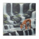 Orangen- und Schwarztiger Tiger, exotische Tiermalerei, Wildtiere in Naturmalerei, tibetischer oder bengalischer Tiger, Blick auf die Berglandschaft, wilde Tiere im Wasserfall, Blick auf die Dschungellandschaft, üppiges Grün, Trinkwasser am Bach, Drink an der Oase der Stromschnellen