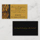 Schönes Gold und schwarze Visitenkarte, mit einem Tigerdruck auf der linken Seite der Karte, mit einem schwarzen umsponnenen Rand. Textbereich ist ein goldenes Braunes und ist kundengerecht, jede mögliche Farbe zu sein, die Sie wollen. Fertigen Sie zum Anzug Ihren Geschäftsbedarf besonders an.