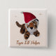 Ein Knopf, der den weichen Spielzeugtiger eines Kindes kennzeichnet, der einen roter und weißer Sankt Hut trägt, um Weihnachten mit kundengerechtem Text zu feiern, der Tiger-Elf-Helfer liest