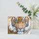 Nah von einem Tigergesicht, wo der Tiger Sie direkt anschaut, und seine orange und schwarz gestreiften Markierungen werden sehr lebendig und detailgetreu dargestellt. Eine lustige Karte für Tier- und Naturliebhaber.