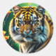 Niedliche KI generierte Tiger mit orangefarbenen Blume.